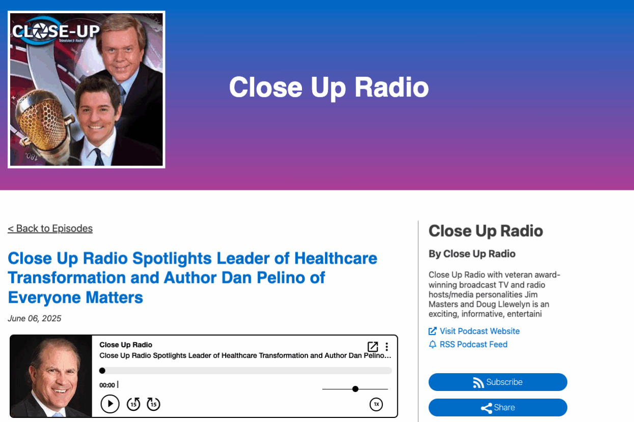 Washington, DC — Dan Pelino is the kind of visionary thinker who never rests. He had a career for more than 35 years, working as a senior executive for IBM. He has since turned his creativity and thought leadership towards a new social impact initiative that empowers citizens to become advocates for their own healthcare. Dan is a gifted and passionate speaker who has appeared on more than 100 podcasts and helped Dr. Oz reach top statistics during sweeps week. He further lectures on leadership at his alma mater and is a board member of several private companies. Recently, he added top-selling author to his credits with the publication of the book Trusted Healers, on the same topic of global healthcare revolution. Why does he do all of this and keep pushing forward? Because he believes Everyone Matters.